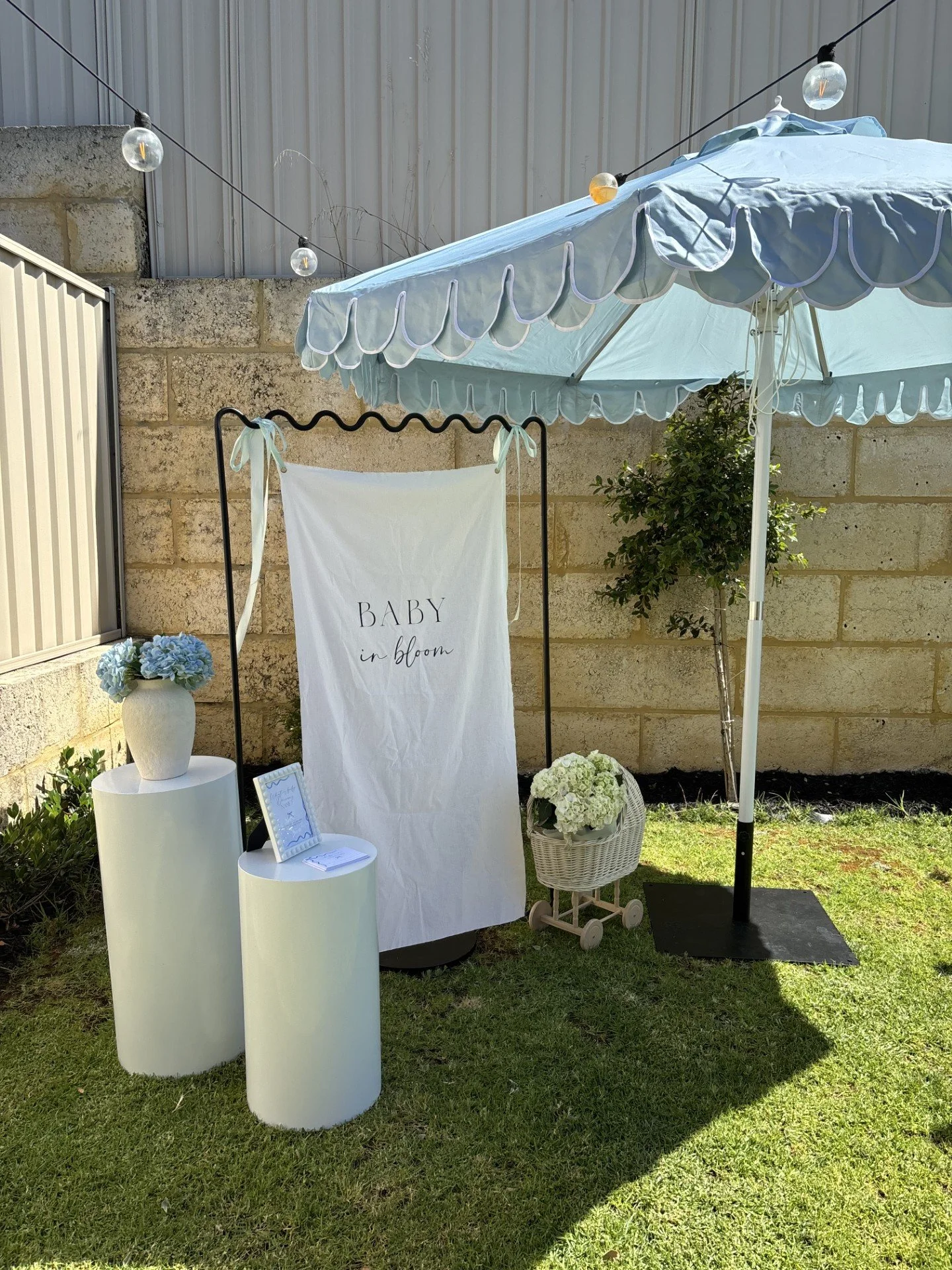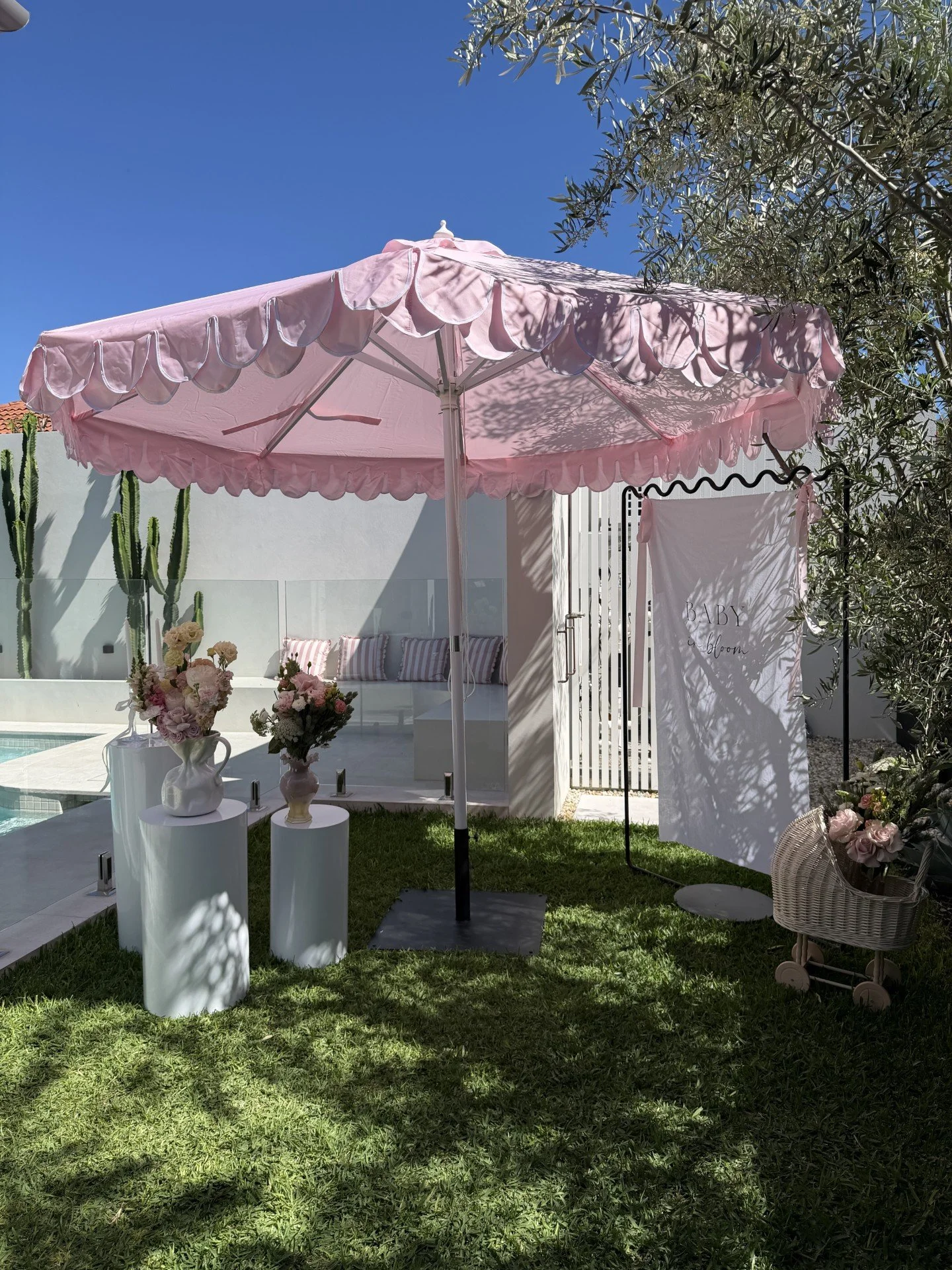 Black Trim Pagoda Umbrella $100.00 Bloom Wishing Well $100.00 Scalloped Market Umbrella $80.00 Champagne Tower $50.00 Baby Shower Pram $80.00 Baby Shower Ensemble $250.00 Ribbed Bud Vases $2.00 Baby Shower Scalloped Umbrella $100.00 Wavy Sign Stand $60.00 Disco Balls $10.00 Ribbed Cake Stand $30.00 Plinths $100.00 Silver Coupe $5.00 Ribbed Champagne Flutes $1.50 Shot Glasses $1.00 Ribbed Wine Glass $1.50 Silver Candlesticks $40.00